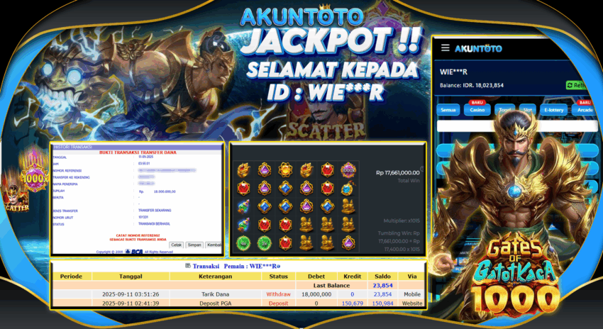 AKUNTOTO JACKPOT SLOT GATES OF GATOT KACA 1000 Rp 18.000.000 kamis 11 SEPTEMBER 2025
