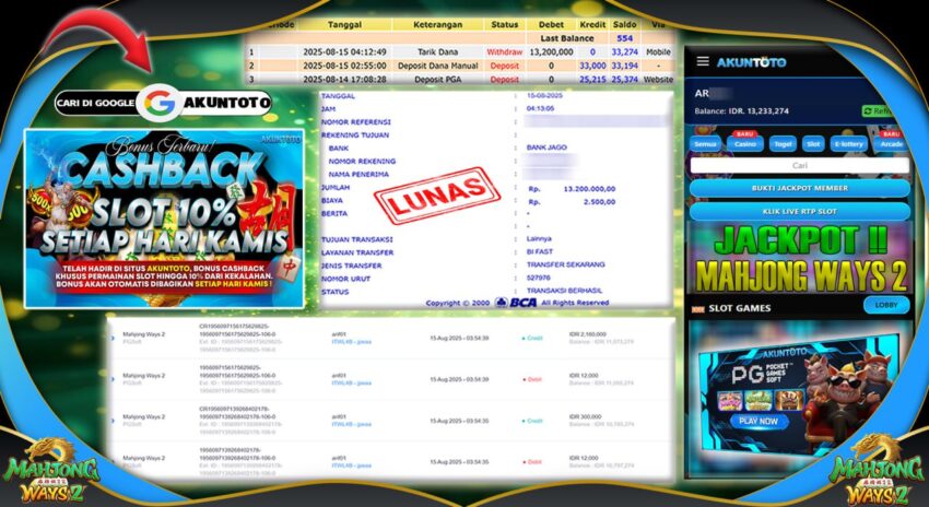 AKUNTOTO JACKPOT SLOT MAHJONG WAYS 2 Rp 13.200.000 SENIN 01 SEPTEMBER 2025
