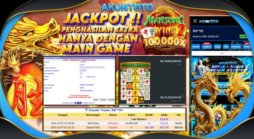 AKUNTOTO JACKPOT SLOT MAHJONG WINS 2 Rp 22.800.000 SELAS 07 OKTOBER 2025