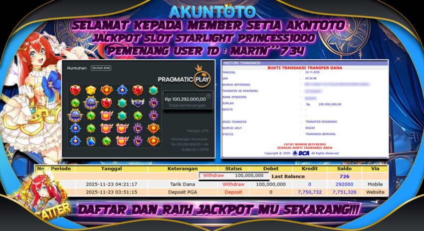 AKUNTOTO JACKPOT STARLIGHT PRINCESS1000 Rp100.000.000 MINGGU 23 NOVEMBER 2025
