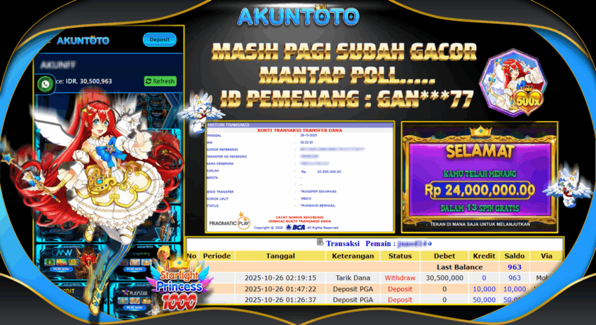 • AKUNTOTO JACKPOT SLOT STARLIGHT PRINCESS Rp 6.300.000,- LUNAS