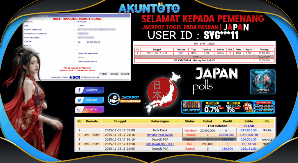 AKUNTOTO JACKPOT TOGEL PADA PASARAN JAPAN Rp20.000.000,- LUNAS